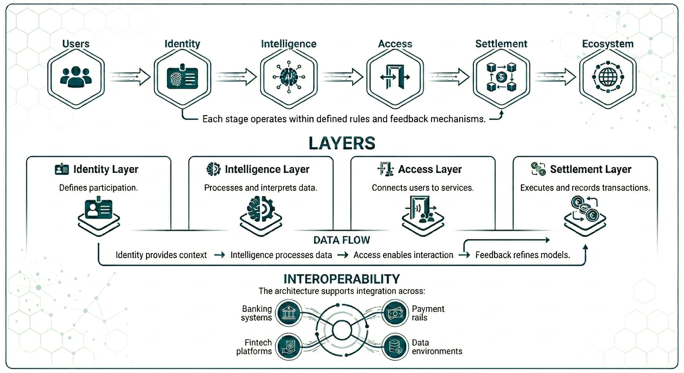 The foundational layer integrating identity, intelligence, access, and settlement without replacing existing systems.